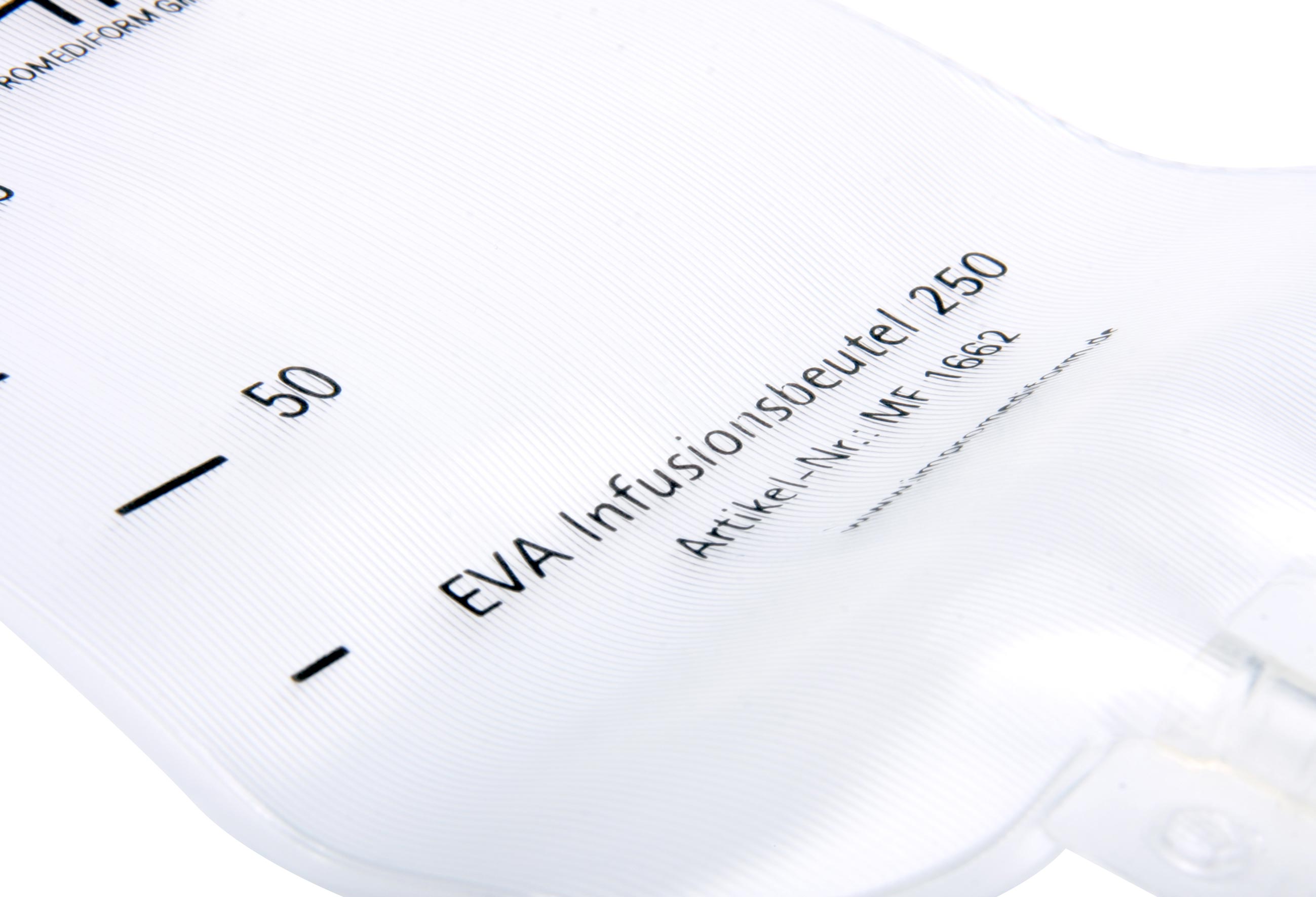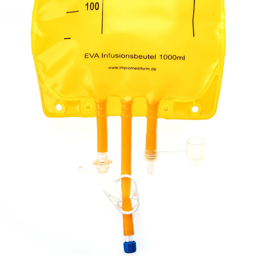 Unsere Misch- und Infusionsbeutel aus EVA (Ethylenvinylacetat) oder aus Mehrschicht-Verbundfolien (mit Gas und UV-Sperrschicht) sind in den Größen von 100 ml bis 5000 ml erhältlich. Unser Sortiment bietet Lösungen mit den unterschiedlichsten Schlauchzugängen. Diese sind kompatibel zu MediMix® und anderen Compoundern und selbstverständlich auch mit Luer-Anschluss erhältlich. IMF Beutel sind DEHP frei und zeichnen sich durch Ihre hohe Qualität aus.
